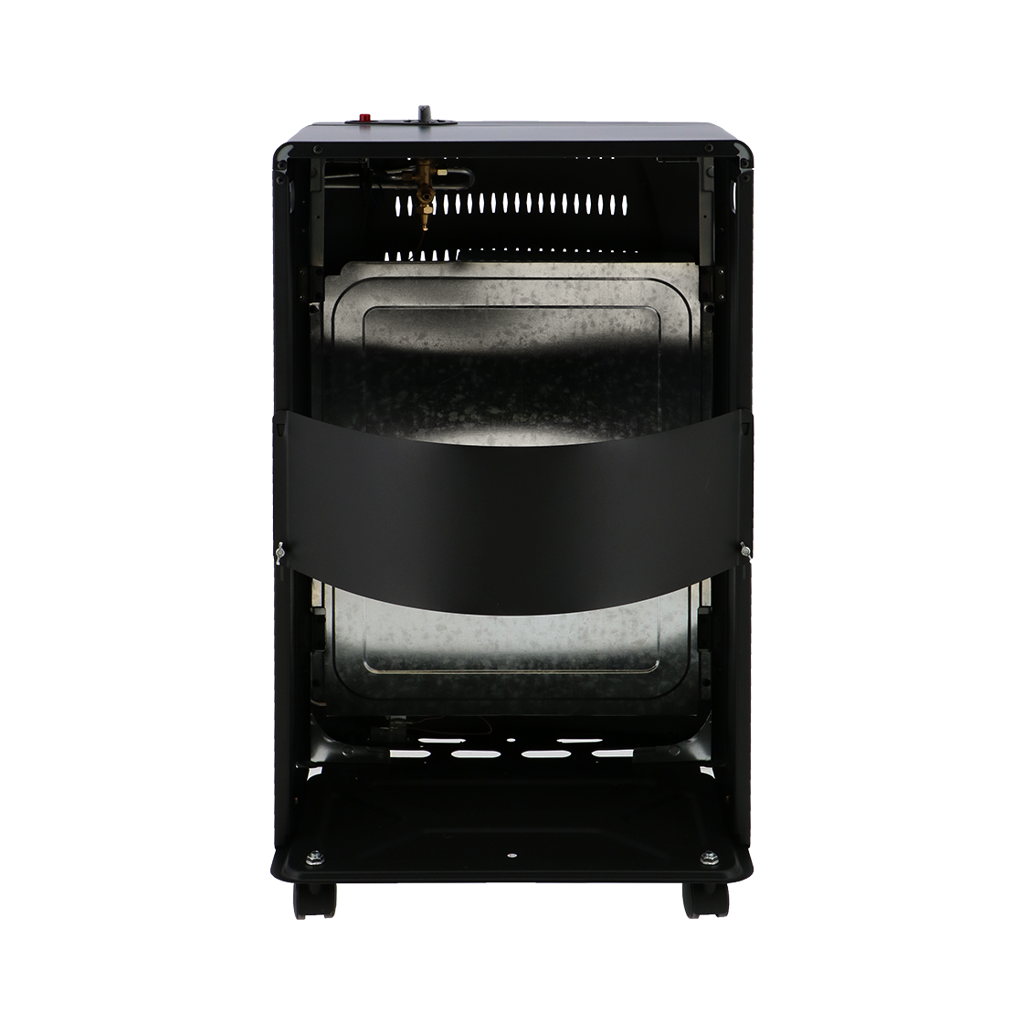 The roller heater has extensive security techniques. These include overcurrent, overheating and overturning protection. With the piezoelectric ignition it has never been easier to light the stove. Caution! Use the mobile gas heater only in well ventilated areas. Not for use in caravans and campers.
