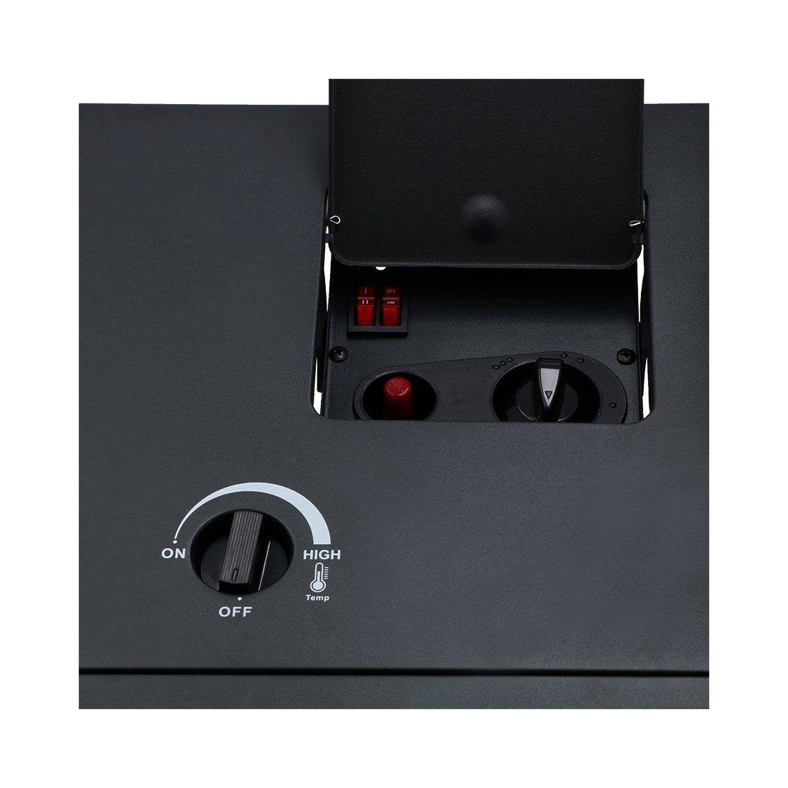 Is your gas bottle empty? Then switch to the electric heating element. You can choose from two electric heating settings: 750 W and 1500 W. The electric heater also has a fan for optimal heat distribution.