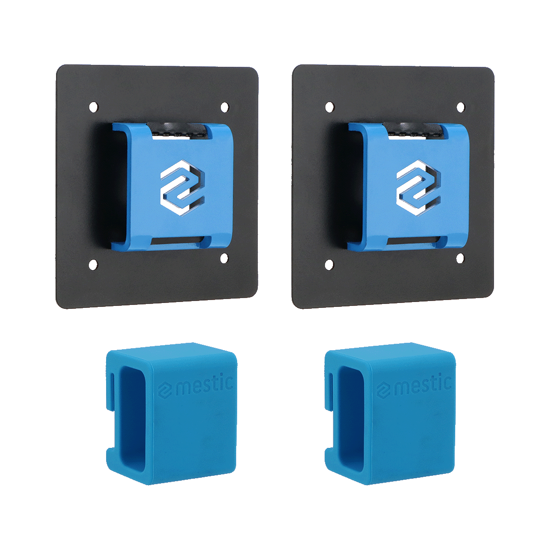 The Mestic transport clamp set consists of two clamps and two handy spacers. You attach the clamps with four screws to a sturdy surface, such as a wall or floor. This clamp is not suitable for mounting on a ceiling. Use screws that are suitable for the surface you are mounting on. Once the clamps are secured, thread a strap through the openings and tighten it around your luggage. This will keep everything neatly in place while driving. Are you using the transport set to secure a cooler? Then the spacers will come in handy. Place the holders between the cooler and the wall so that the lid can still be opened even after the cooler has been secured to the wall.