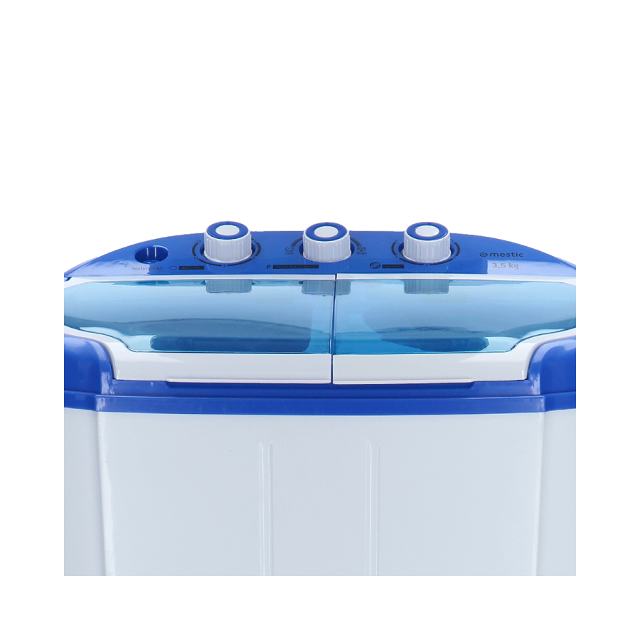 The Mestic washing machine with spin dryer MW-120 works on the basis of a pulsator. The motor is located at the bottom of the washing drum and drives the water. The water flow causes the clothes (up to 3.5 kg) to move in the drum. The washing machine features two laundry programmes: delicate and normal laundry. Choose the desired programme and add detergent. Your clothes will be clean in no time. Then you can wring out your wet laundry weighing up to 1.5 kg in the spin dryer. This significantly reduces the drying time of your clothes. This washer/spin dryer combination is great for when you go on holiday. It is lightweight, compact and energy efficient.