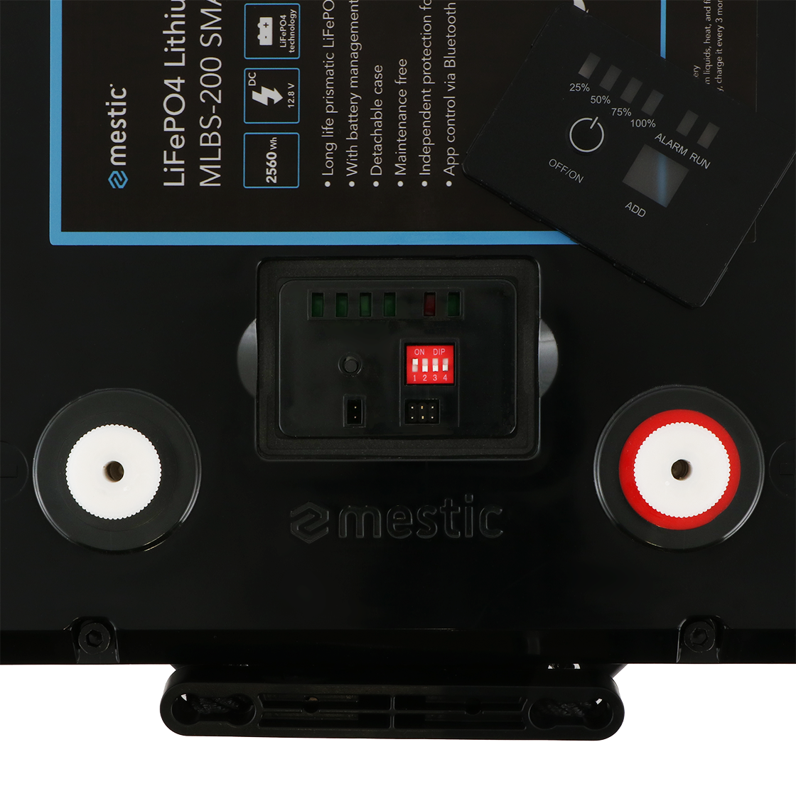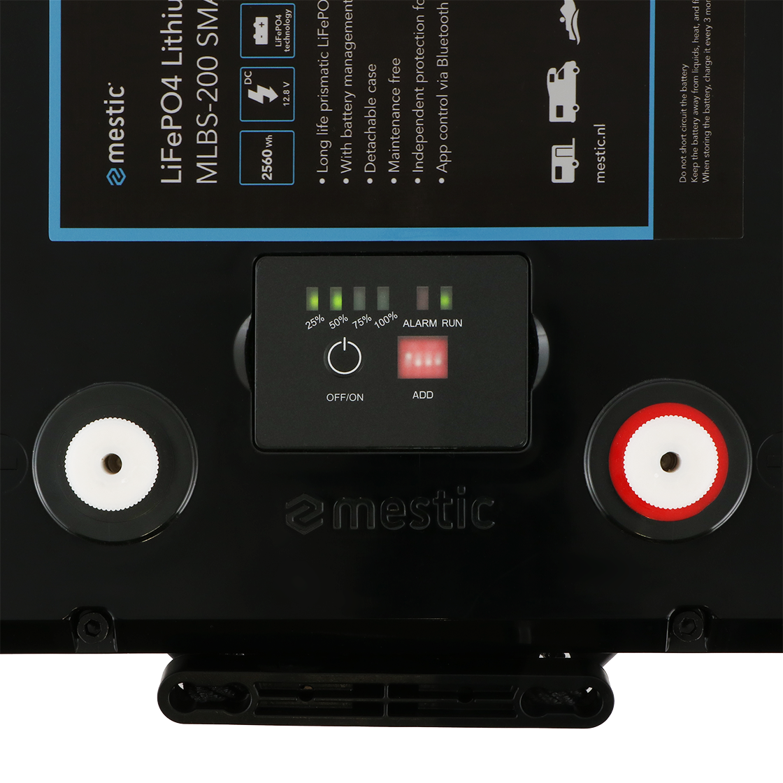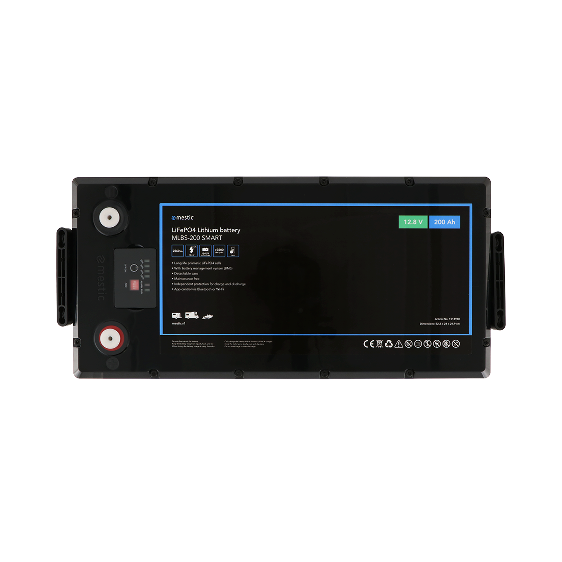 The MLBS-200 smart is a powerful and reliable 200 Ah battery. Control the battery via the Mestic app with Bluetooth or WiFi. This lithium battery is the ideal replacement for a traditional lead-acid battery: lighter, maintenance-free and fully (100%) dischargable.